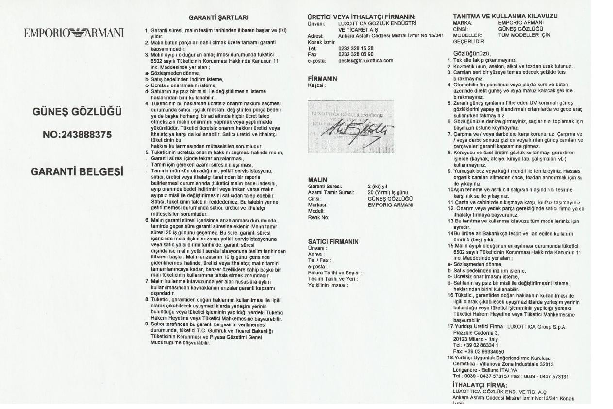 Garanti belgesi yıpranmış,