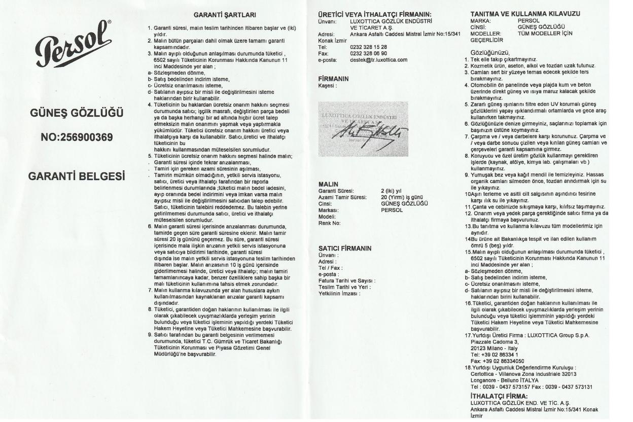 Orijinal gözlük kutusu, yıpranmamış ambalajı, garanti belgesi, kullanılmamış silme bezi ve aksesuarlarıyla eksiksiz şekilde olması,