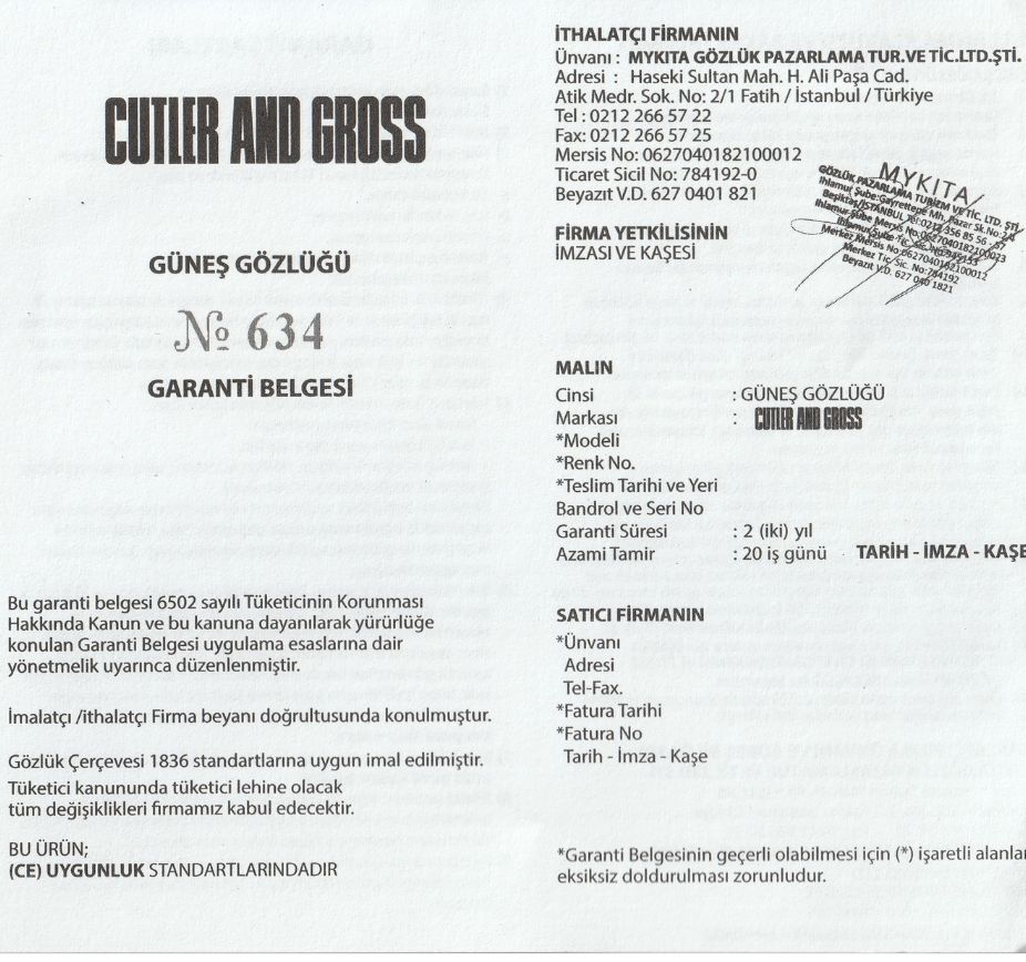 Ürünün üretici firmaya (örneğin: Luxottica, Safilo, vs.) gönderilmesi gerektiğinde süreç ortalama 6–8 hafta sürebilmektedir.